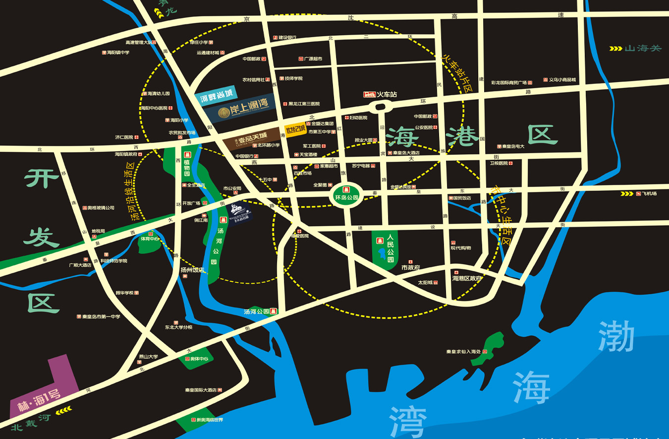 岸上瀾灣項目位于海港區西港路與北環路交叉口北行200米,橫跨西港路與海陽路。總建筑面積為77萬平方米,占地面積為22萬平方米。容積率2.7,綠化率35%,是由21棟高層,3棟小高層,29棟多層,以及1.6萬平社區商業組成,并配套幼兒園和公辦小學。岸上瀾灣項目建筑風格為經典的ArtDeco風格。項目本著“水潤瀾山,綠動泊灣”的園林設計理念打造低密度宜居社區。為居家而來,為生活所想。岸上瀾灣根據都市生活者對生活空間個性與實用的需求,以最精細化的設計,提供了最優質的戶型。